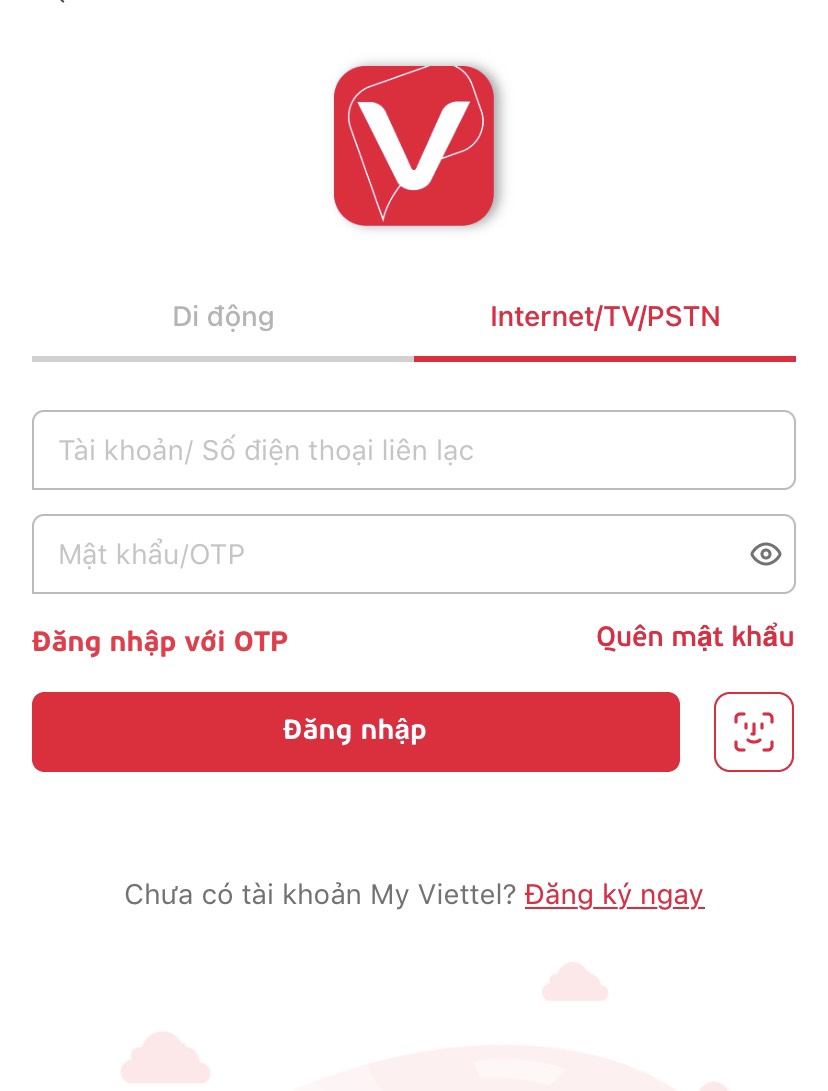 Bước 1: Đăng nhập My Viettel bằng tài khoản Internet cố định của khách hàng (trường hợp chưa có My Viettel, vui lòng tải ứng dụng về để thực hiện).